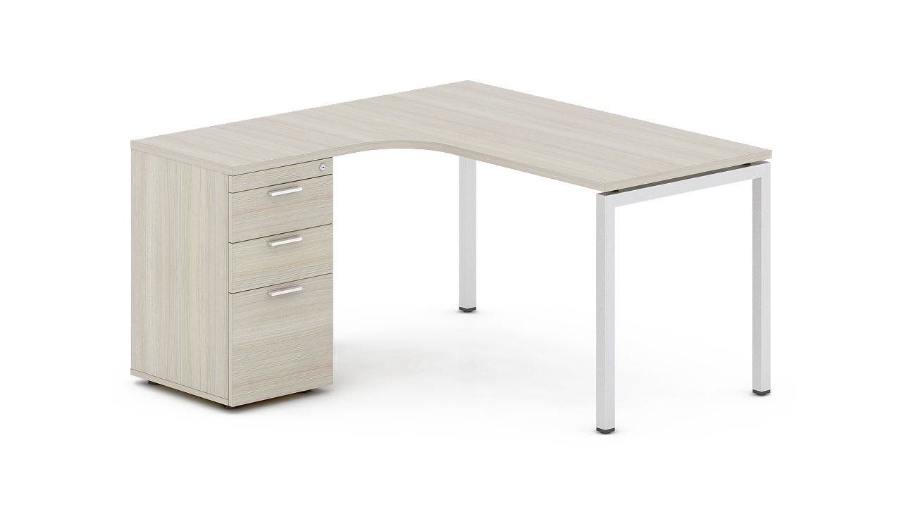 KT :1400/600mm(Dài)1200/500mm(Rộng)750mm(Cao)Mặt bàn dày 25mm hình L, làm bằng ván MFC phủ Melamine chống trầy...